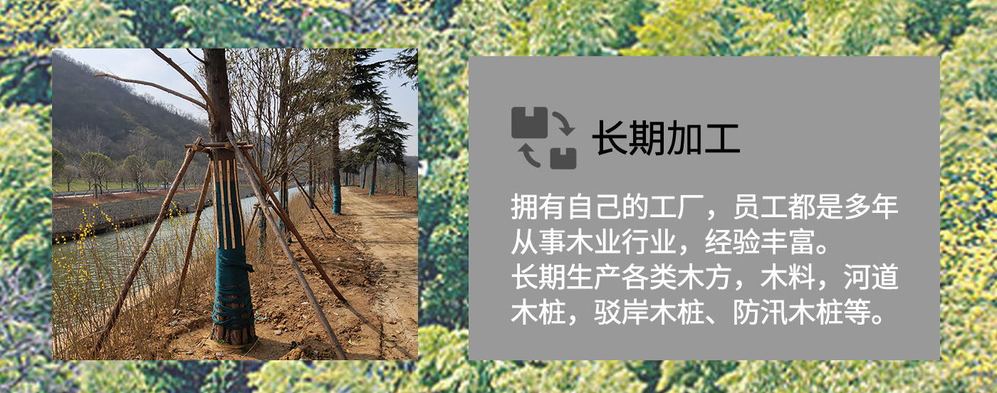 南京市云森木業有限公司位于南京市高淳區。是一家生產加工,線上銷售為一體的現代化企業。擁有完善、科學的質量管理體系及工作團隊。 公司主營松木樁,杉木樁,打樁木,河道木樁,駁岸木樁,防汛木樁,景觀木樁、園林綠化支撐桿等,也可支持方料,木板等木材定制加工產品,所選原材料均為黃山中心林區,樹齡均在三十年左右。質地緊密,樹形優美。 本公司貨源充足,供貨能力強,地處高淳,交通方便利,江浙滬皖送貨上門,當天可達。本著“誠信為本,客戶至上”的經營宗旨,真誠希望與您合作。 歡迎各位客戶前來咨詢,定以優良品質和價格回饋廣大客戶。
